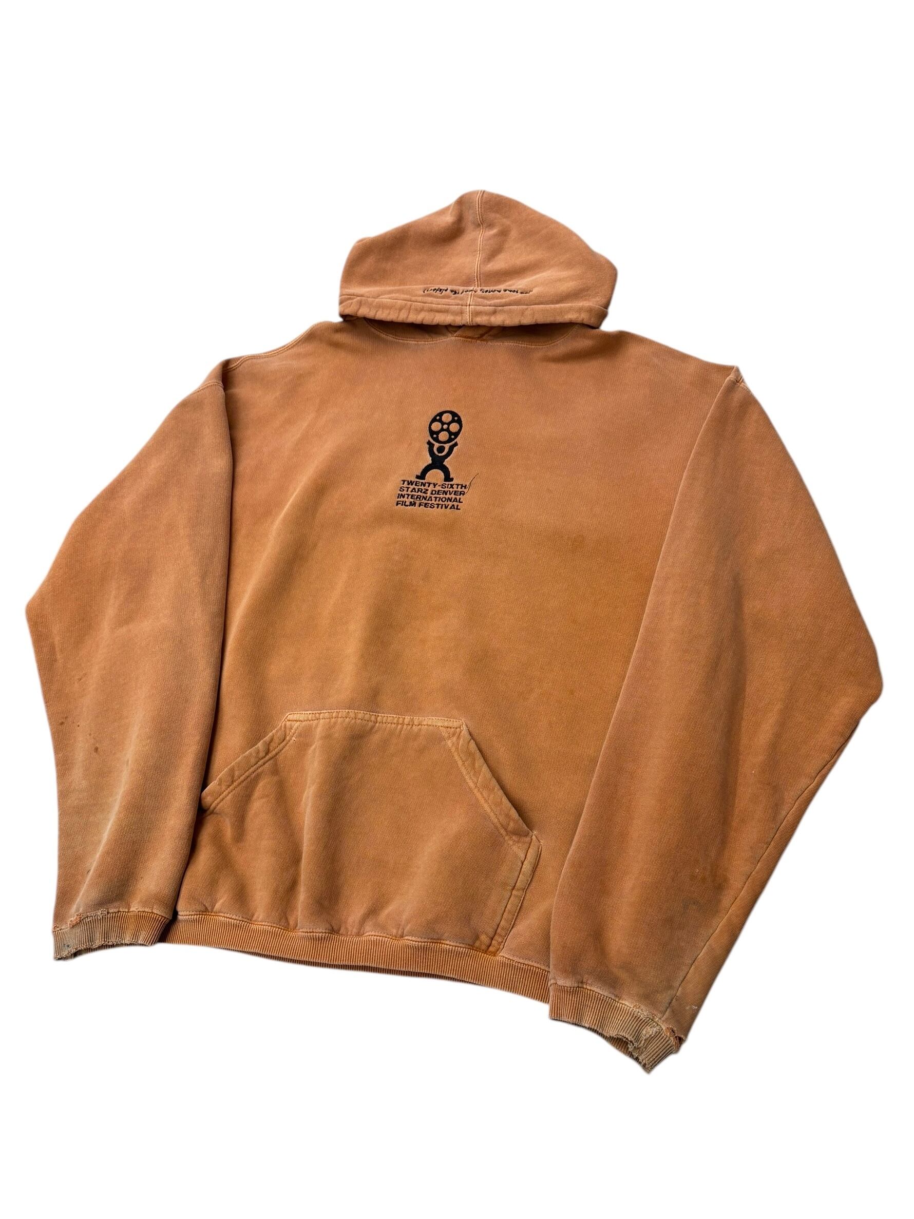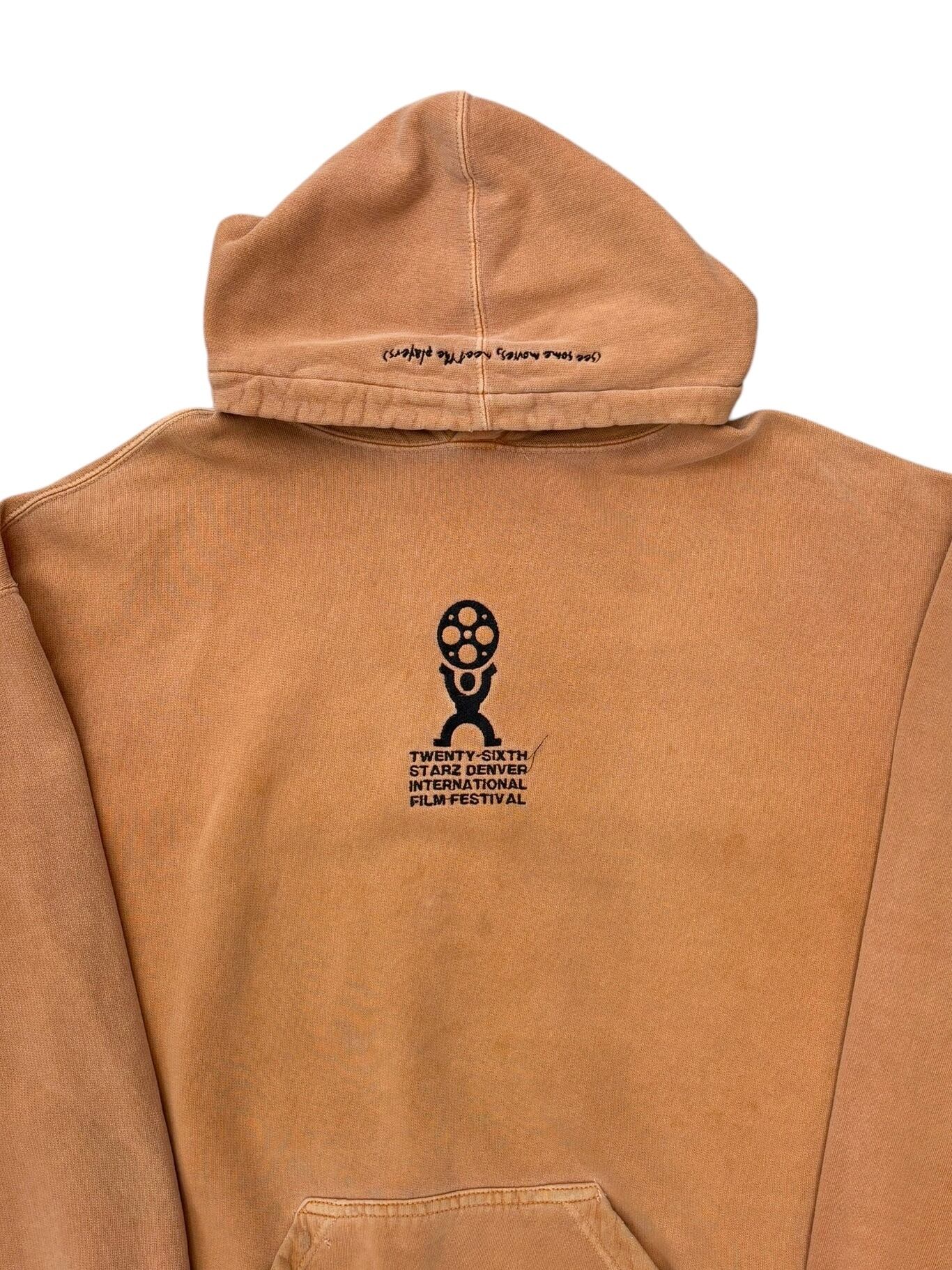 ヴィンテージパーカー、フーディー、フェスティバルスウェット、カルチャー、ブラウン、古着、ユーロ古着、ストリート、映画T、アートスウェット、デンバーフィルムフェスティバル