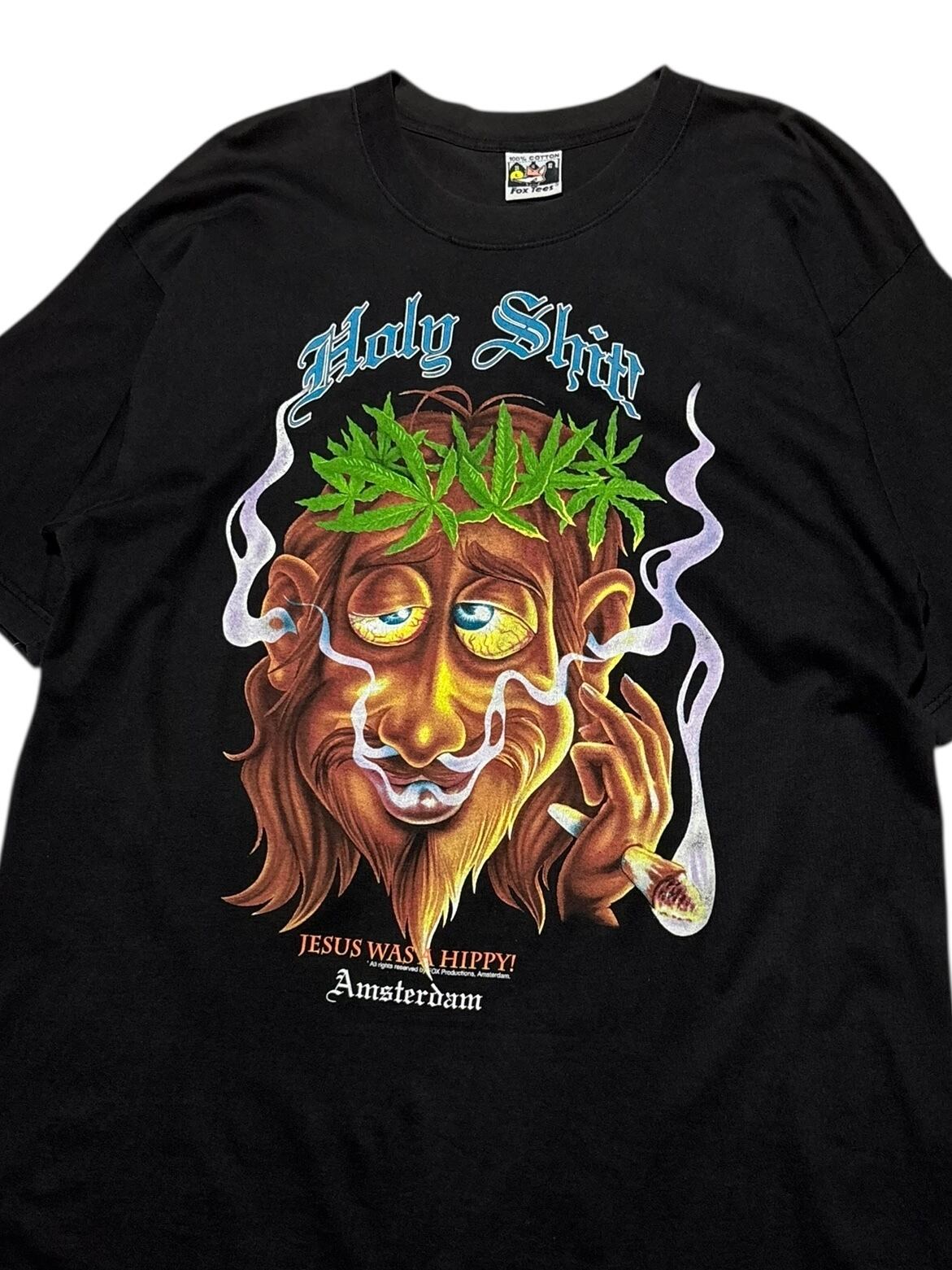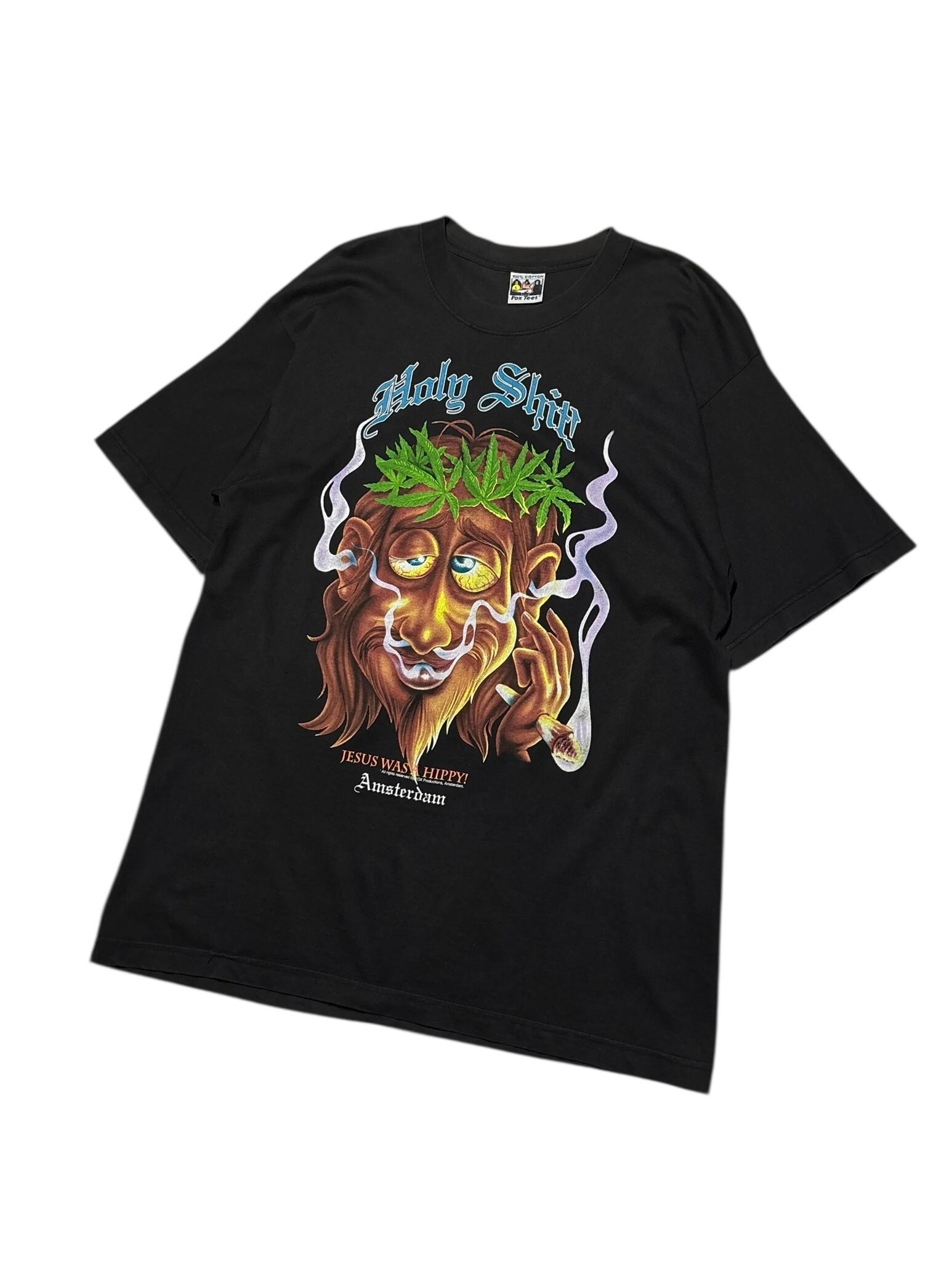 「Jesus Was a Hippy!」というメッセージと、ヘンプやスモークのイメージが融合したサイケデリックなデザインが特徴です。