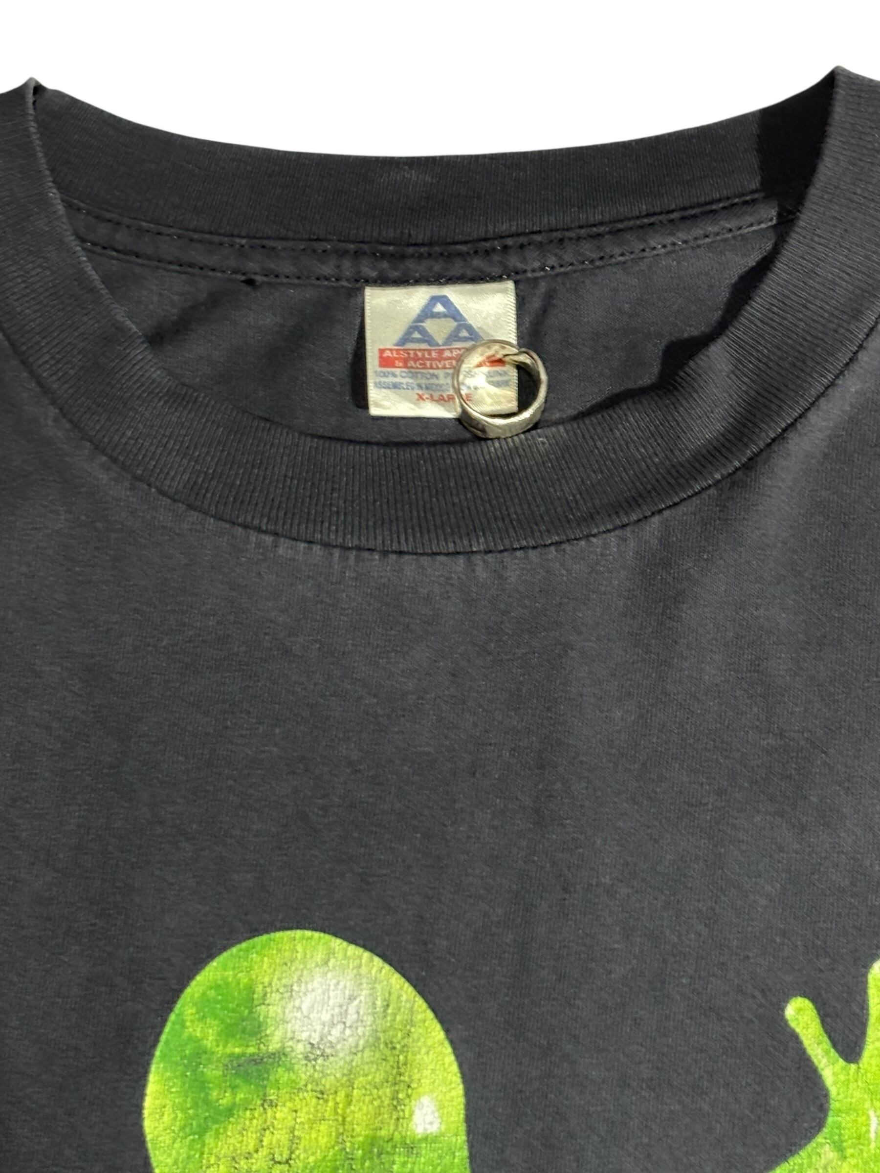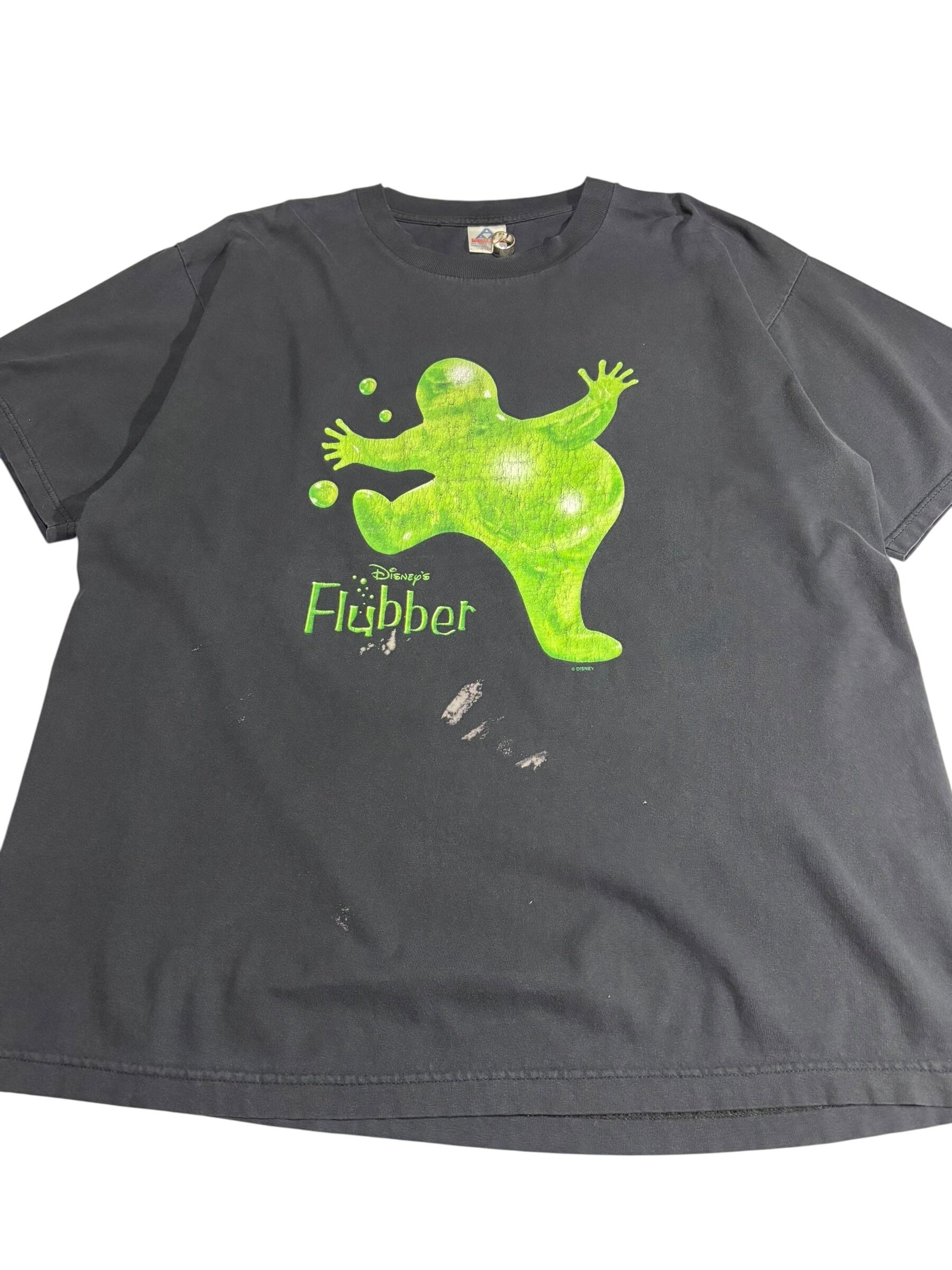 1997年公開のディズニー映画『Flubber(フラバー)』のプロモーションTシャツ。ブラックボディに蛍光グリーンのフラバーが大きくプリントされ、映画のユーモアとポップな世界観をそのまま表現したデザイン。90sムード溢れるカラーリングとプリントで、ディズニー&ムービーTコレクションの中でも人気の高い一枚です。