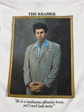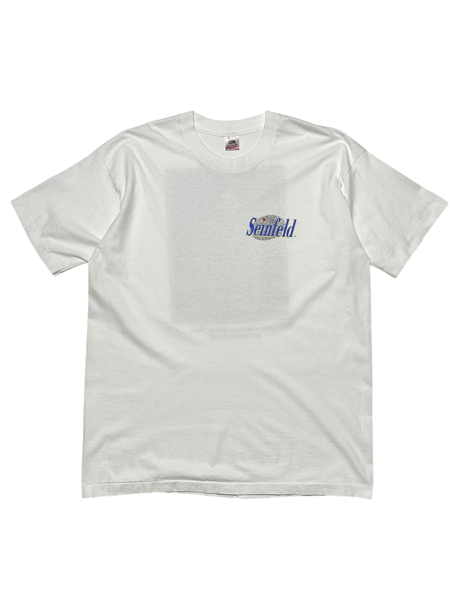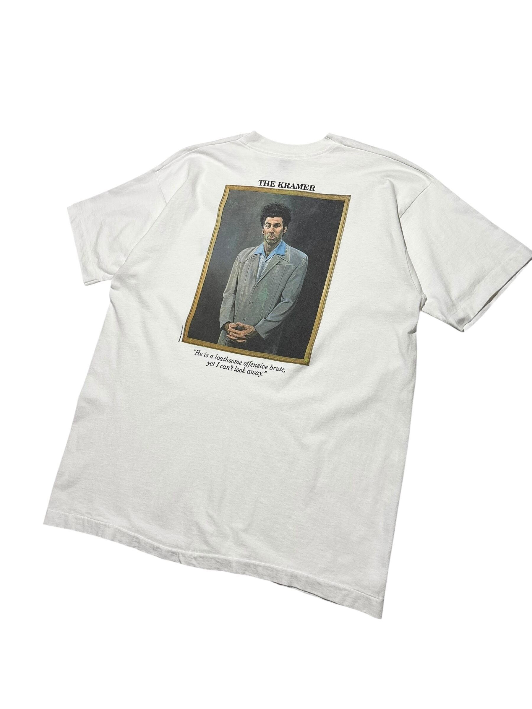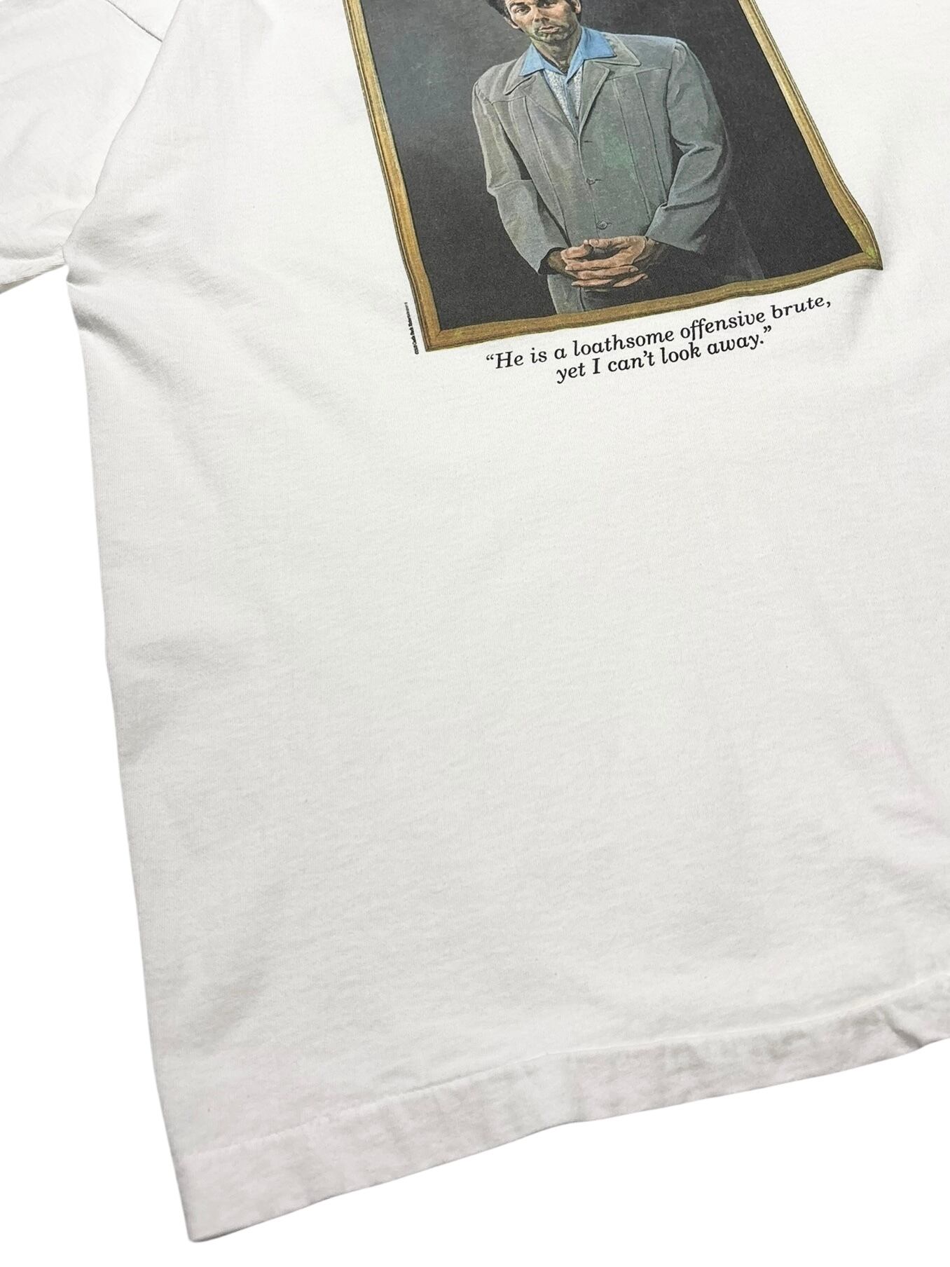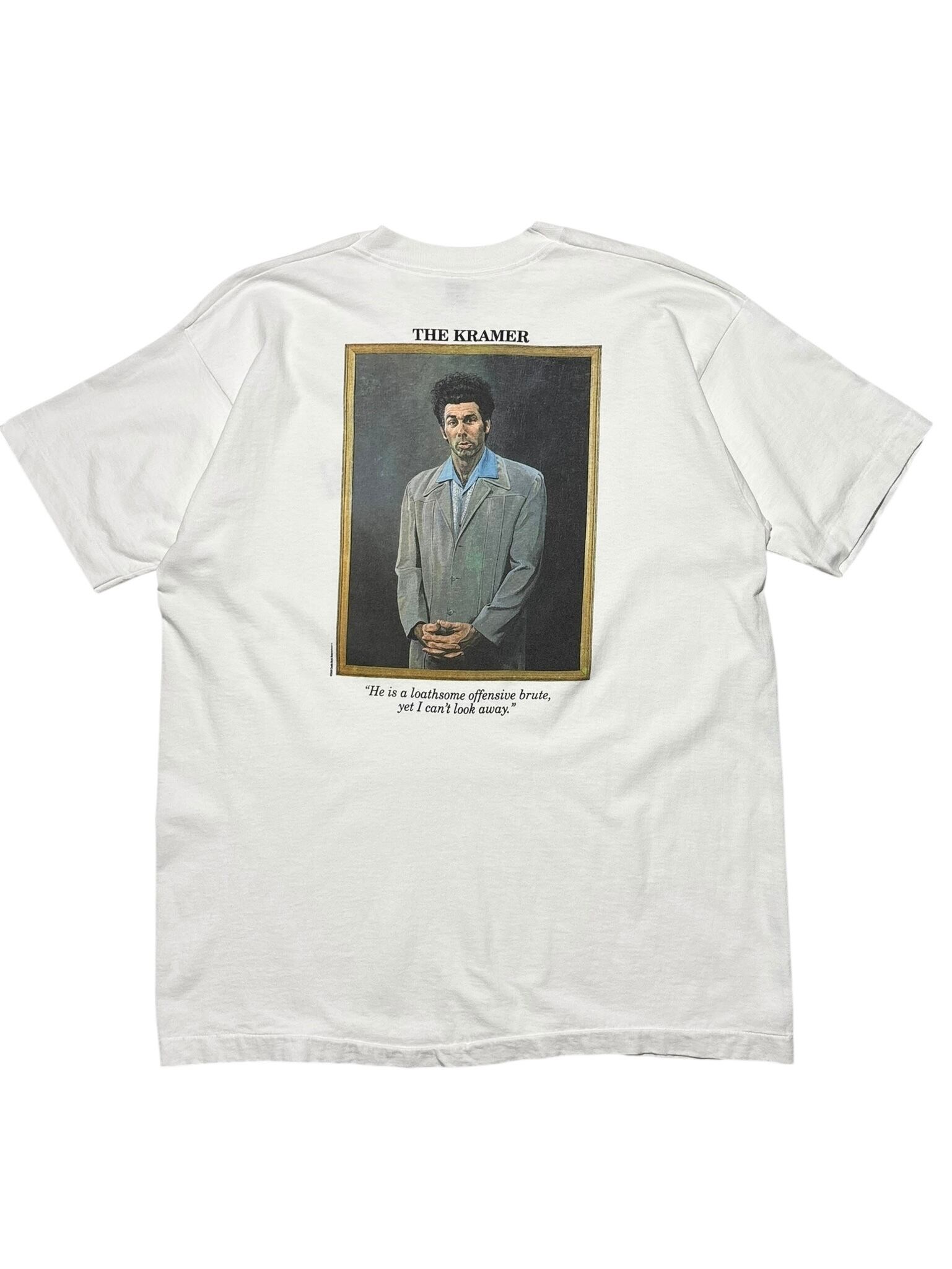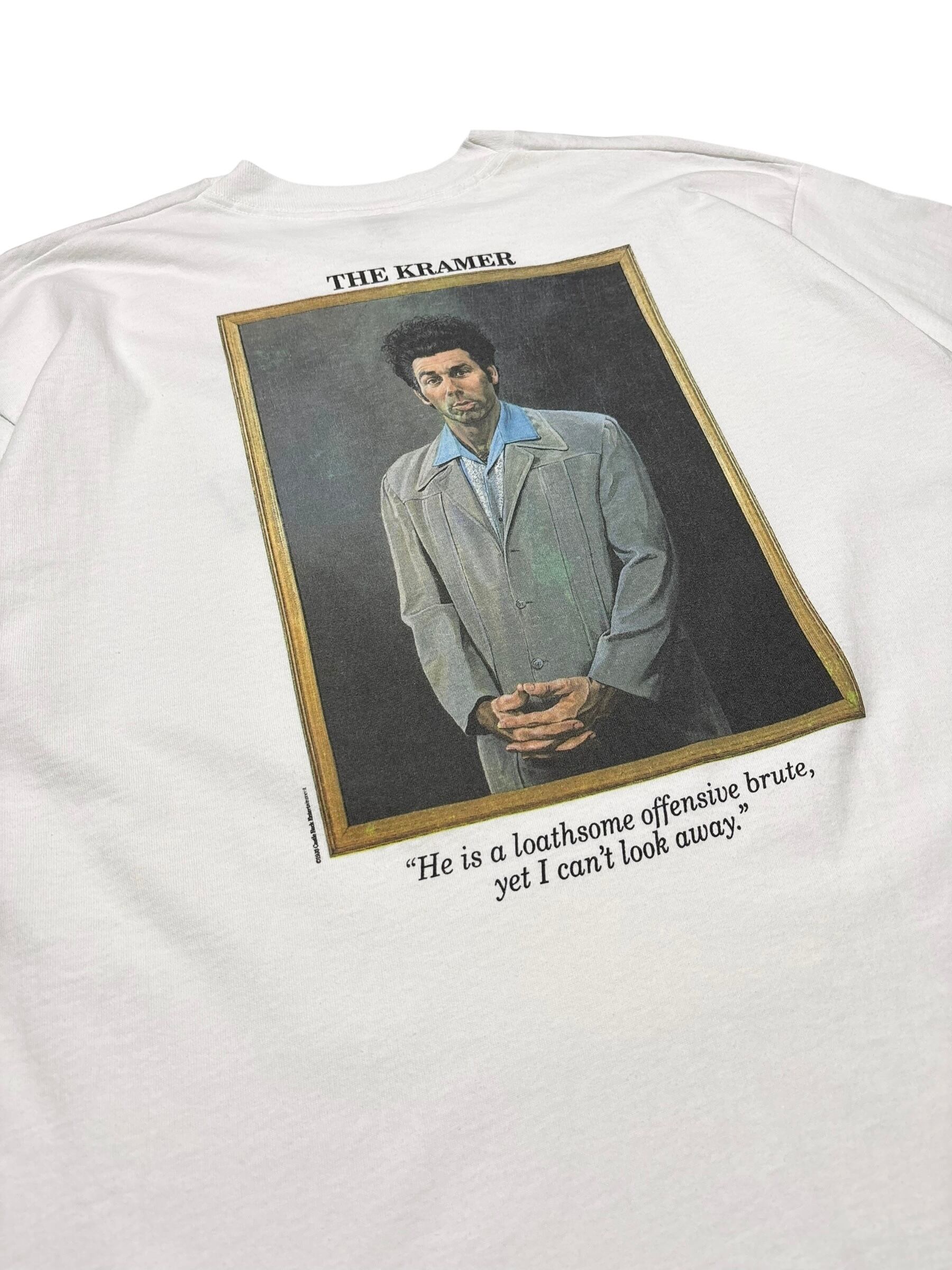 アメリカの伝説的シットコム Seinfeld(サインフェルド) より、人気キャラクター「Cosmo Kramer(コズモ・クレイマー)」を大きくプリントした90sヴィンテージTシャツ。フロントにはSeinfeldロゴ、バックには劇中でも象徴的なクレイマーのポートレートが大胆にデザインされています。