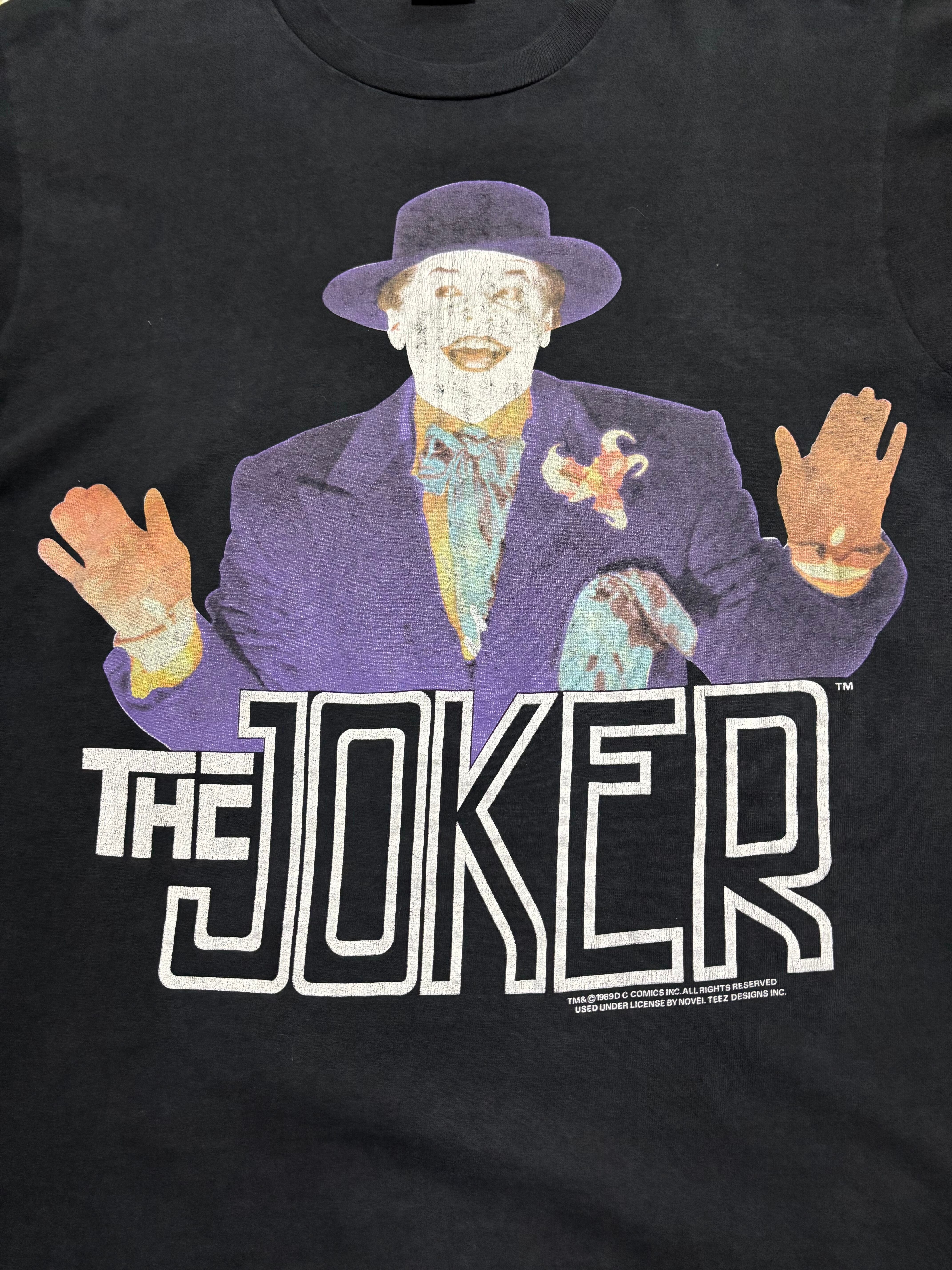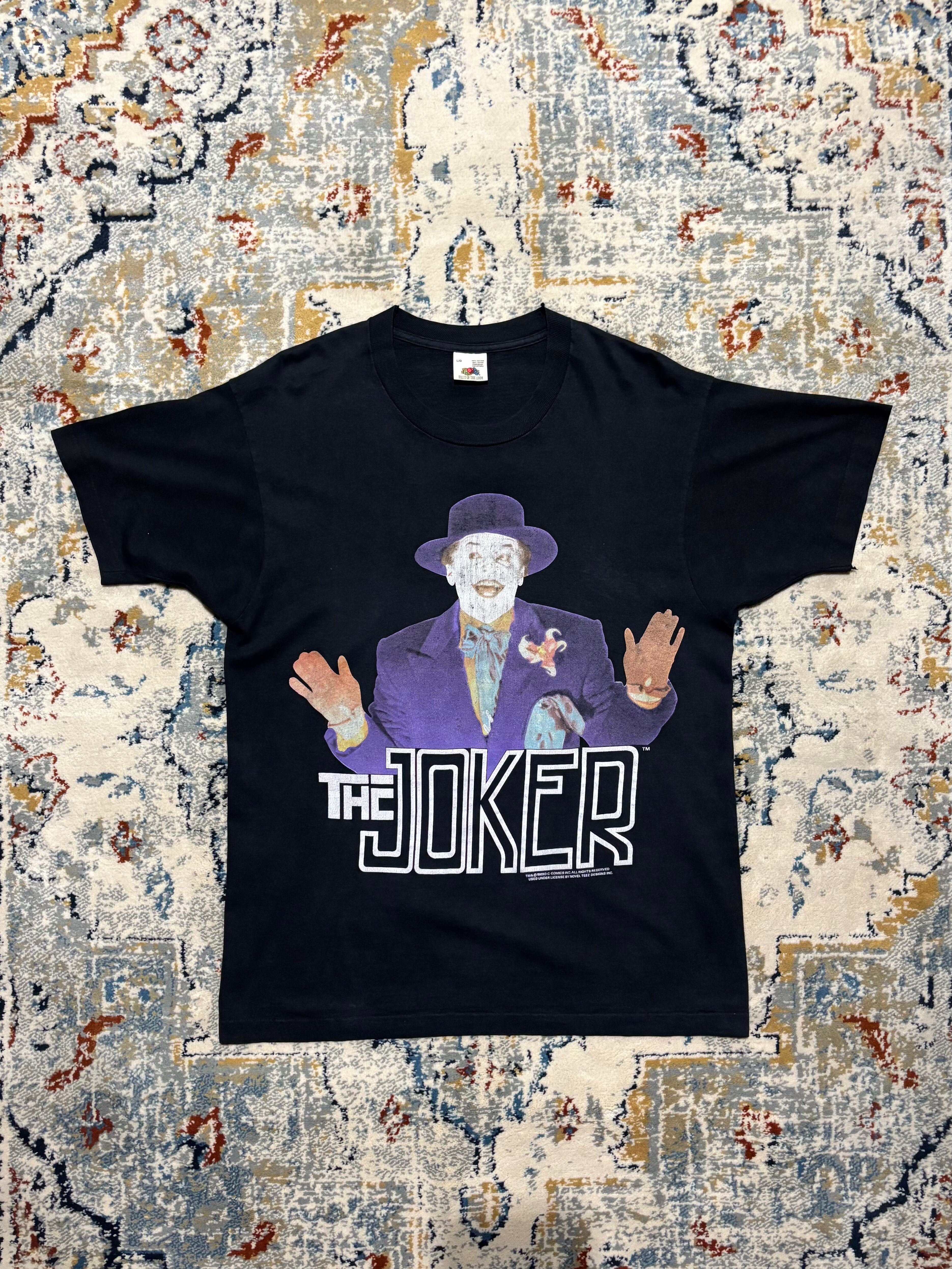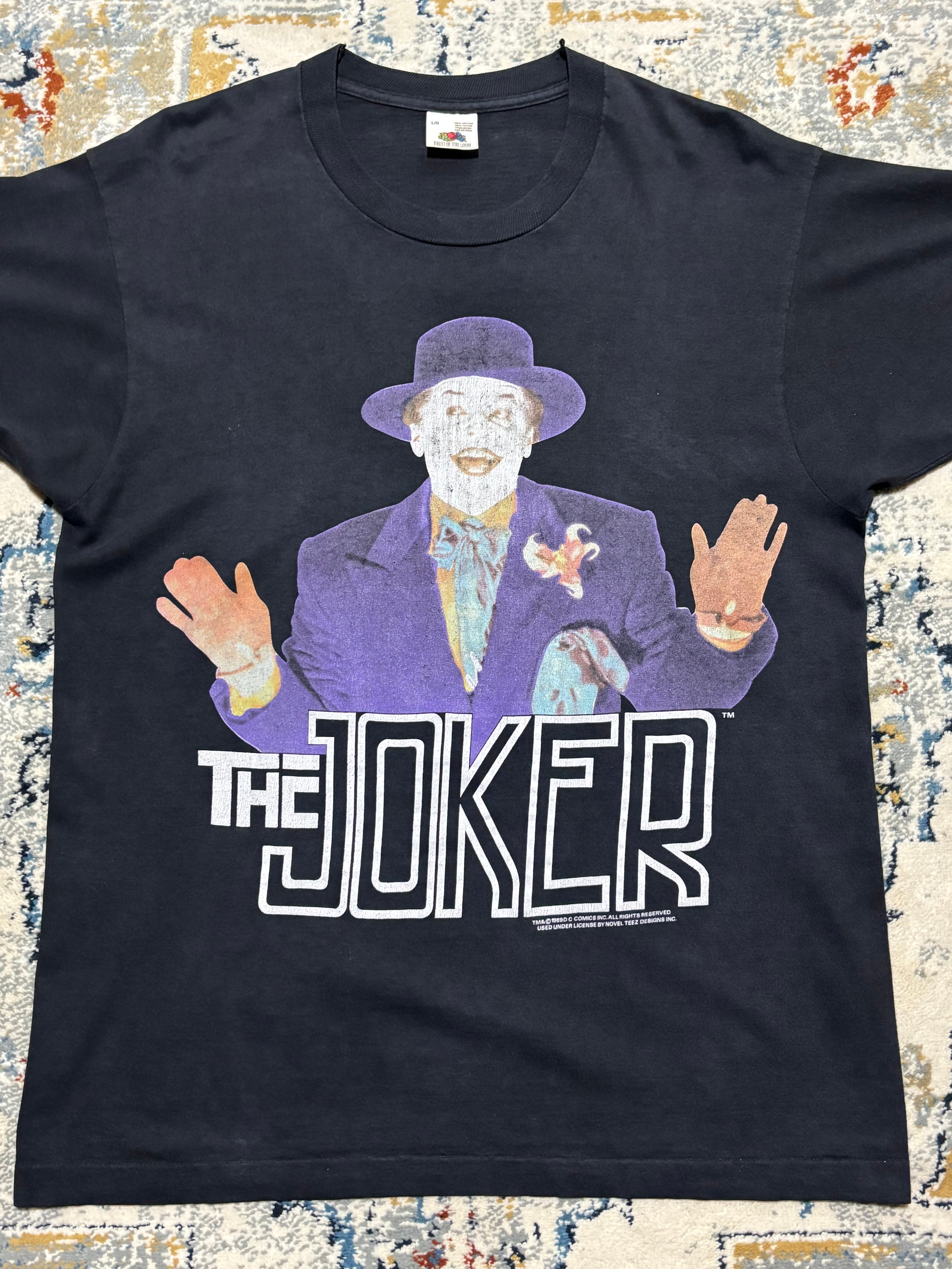 1989年公開のティム・バートン版『BATMAN』より、ジャック・ニコルソン演じるジョーカーがプリントされた一枚。アートワークは当時の映画ポスターをベースにしたもので、独特の色味と構図がヴィンテージ特有の雰囲気を漂わせる。映画ファンはもちろん、アメコミカルチャーや80’sムービーグラフィック好きにもおすすめの名作。
