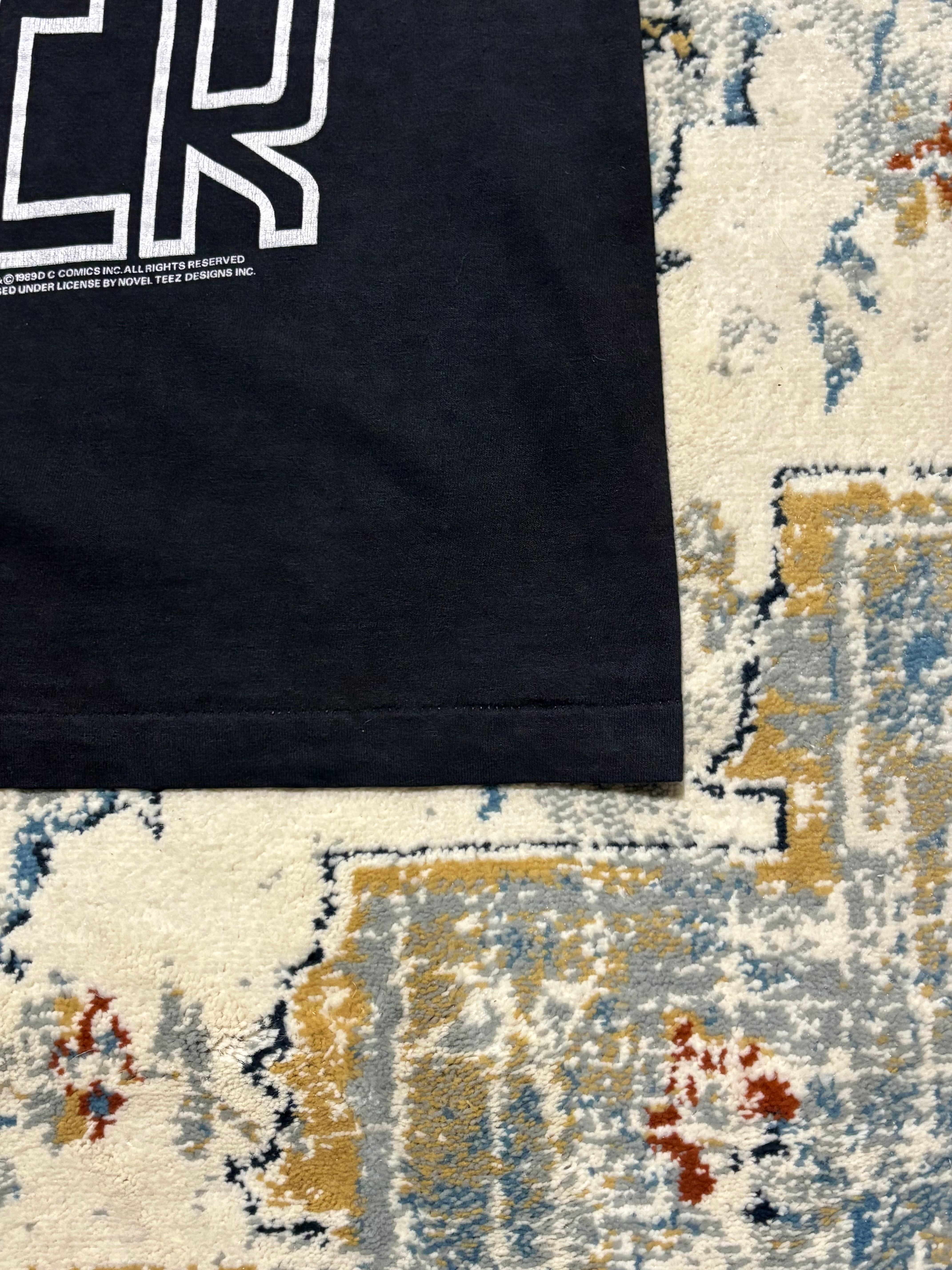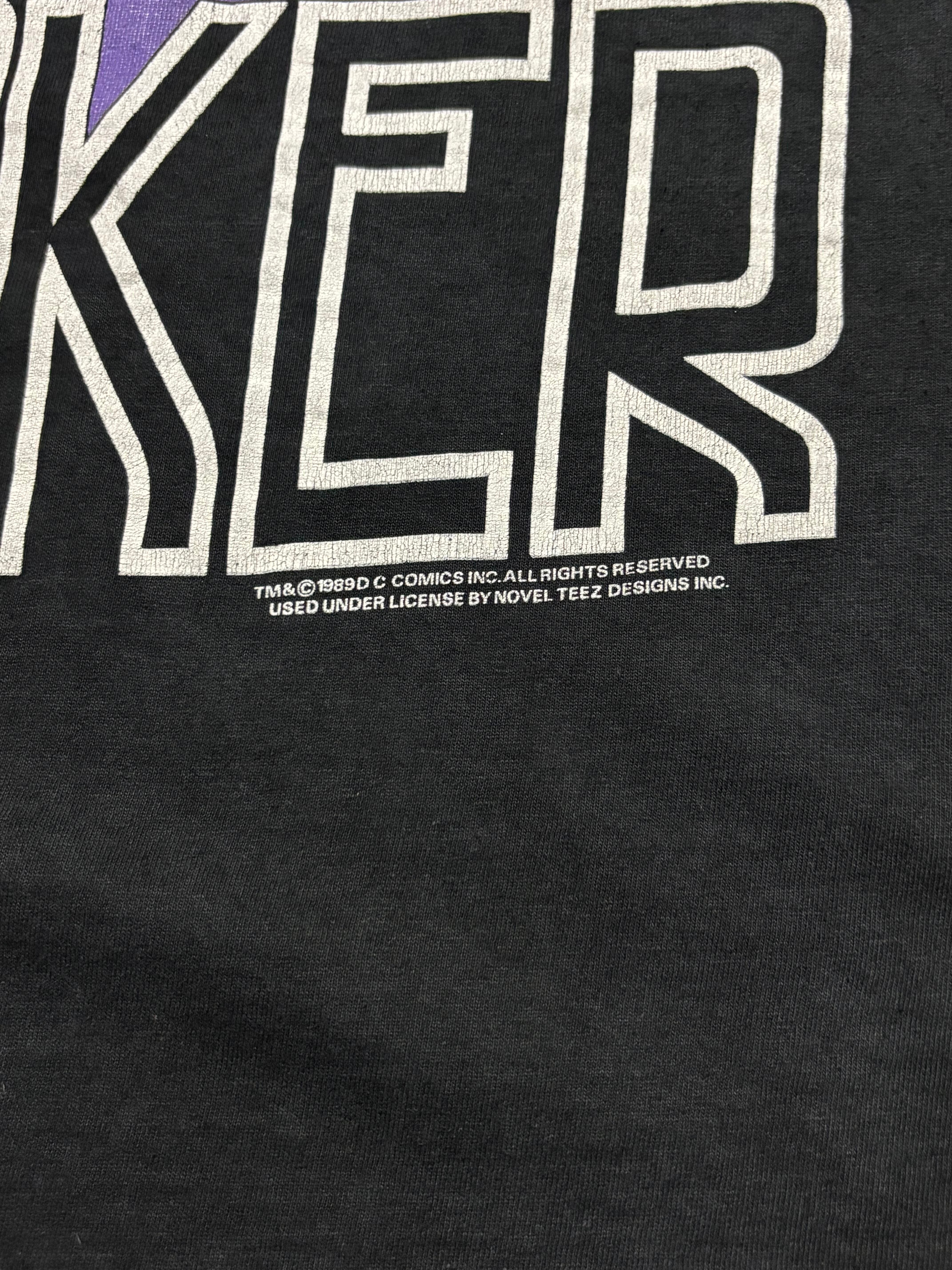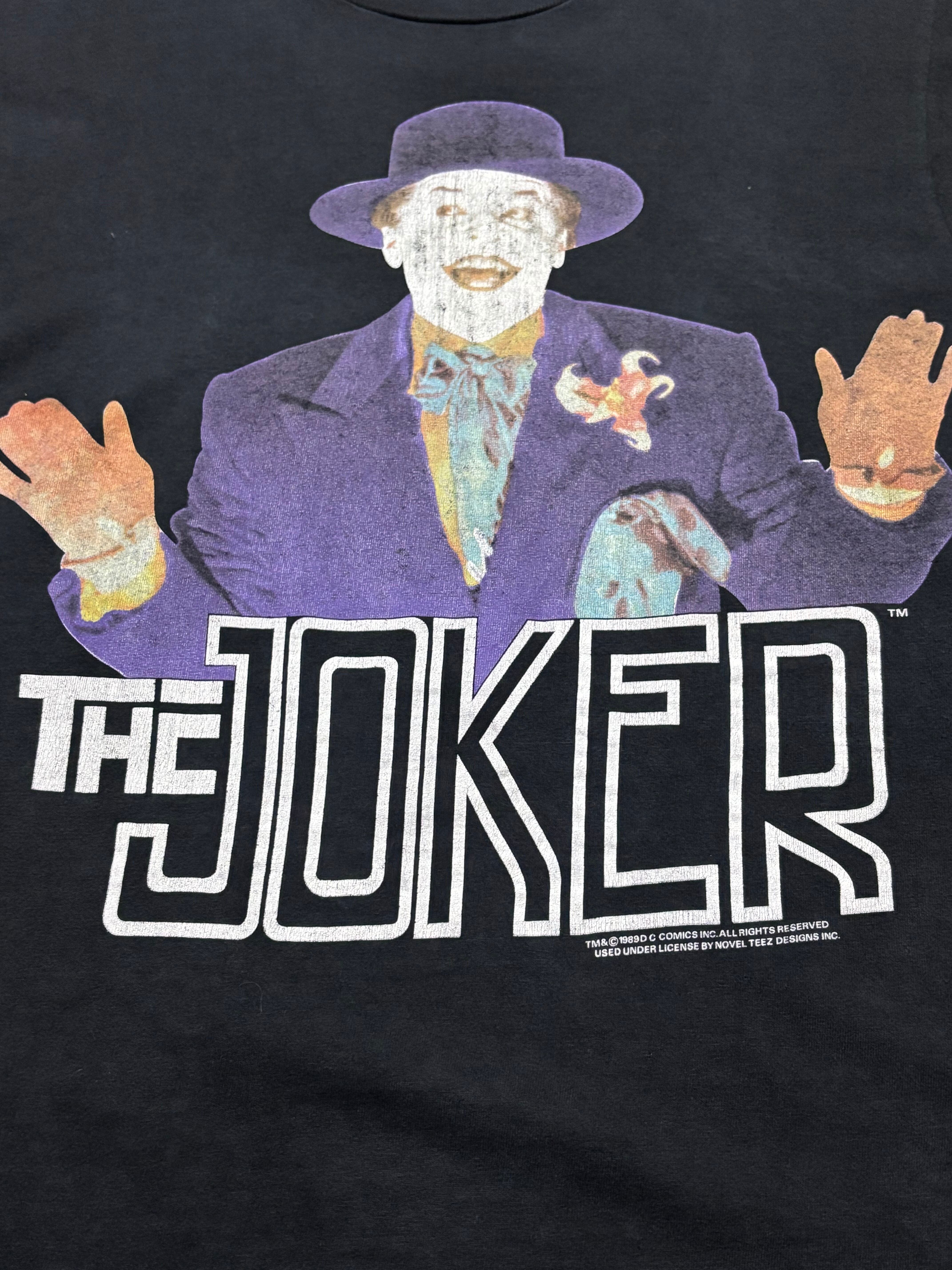 1989年公開のティム・バートン版『BATMAN』より、ジャック・ニコルソン演じるジョーカーがプリントされた一枚。アートワークは当時の映画ポスターをベースにしたもので、独特の色味と構図がヴィンテージ特有の雰囲気を漂わせる。映画ファンはもちろん、アメコミカルチャーや80’sムービーグラフィック好きにもおすすめの名作。